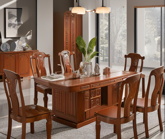 新中式中式餐廳實木餐桌椅